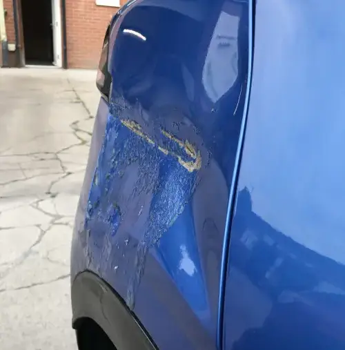 We were upfront with the customer, explaining that ideally the panel would need replacing and that making an insurance claim would be the most effective solution.